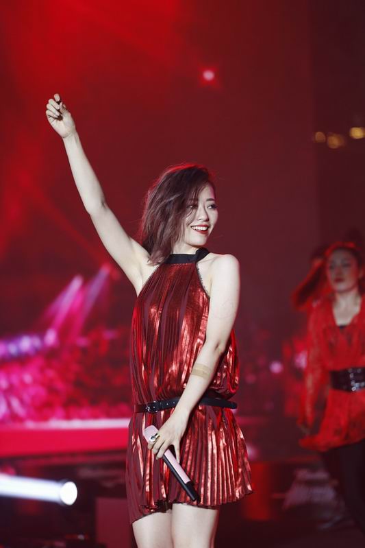 起跑前,张靓颖与现场三千余名潮人大跳触电舞步,为“触电酷跑”热身。活泼好动的靓颖更是来到“触电酷跑”终点为众多跑者加油鼓劲。