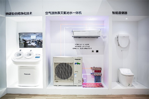 图:松下纳诺怡TM空间净化技术、松下空气源热泵天氟地水一体机、松下智能马桶