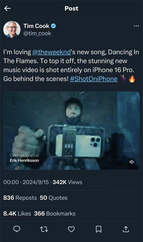 值得注意的是,苹果公司首席执行官库克在发布会现场透露,本次发布会的影像内容均由iPhone 17 Pro 拍摄。