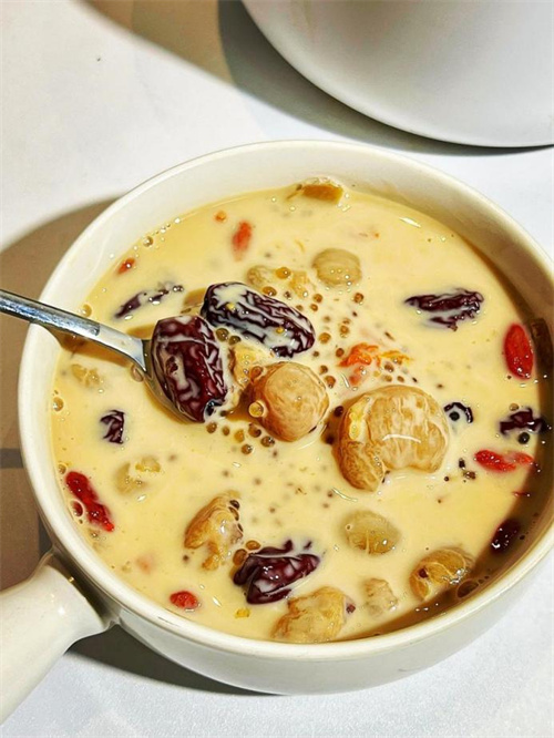 2. 活力满满:羊奶红枣桂圆昔(适合女性/熬夜党)