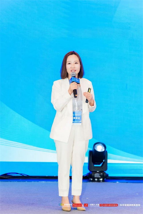 在主题演讲环节,崔韶芳女士全面阐述了大麦微针植发的发展理念与实践成果。她首先感谢高促会的诚挚邀约,并表示很高兴大麦微针植发能够作为大湾区科技创新力量之一,在本次盛会分享品牌的科技创新成果。